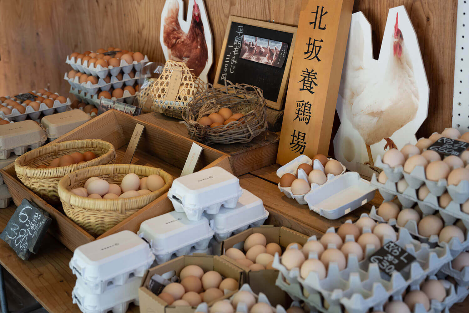 島の北西、北淡インターチェンジの近くに腰を据える『北坂養鶏場』は、そのこだわりのスタイルと高い品質で、島内外からの支持を得る養鶏場。ここはその直売所。採れたてほやほやの生卵を求め、多くの近隣住人が足繁くかよう地元の人気店です。店内には、くだんの朝採れ卵やHESTA LIFE storeでも取り扱う〈たまごまるごとプリン〉など、ここだけの商品がずらり。