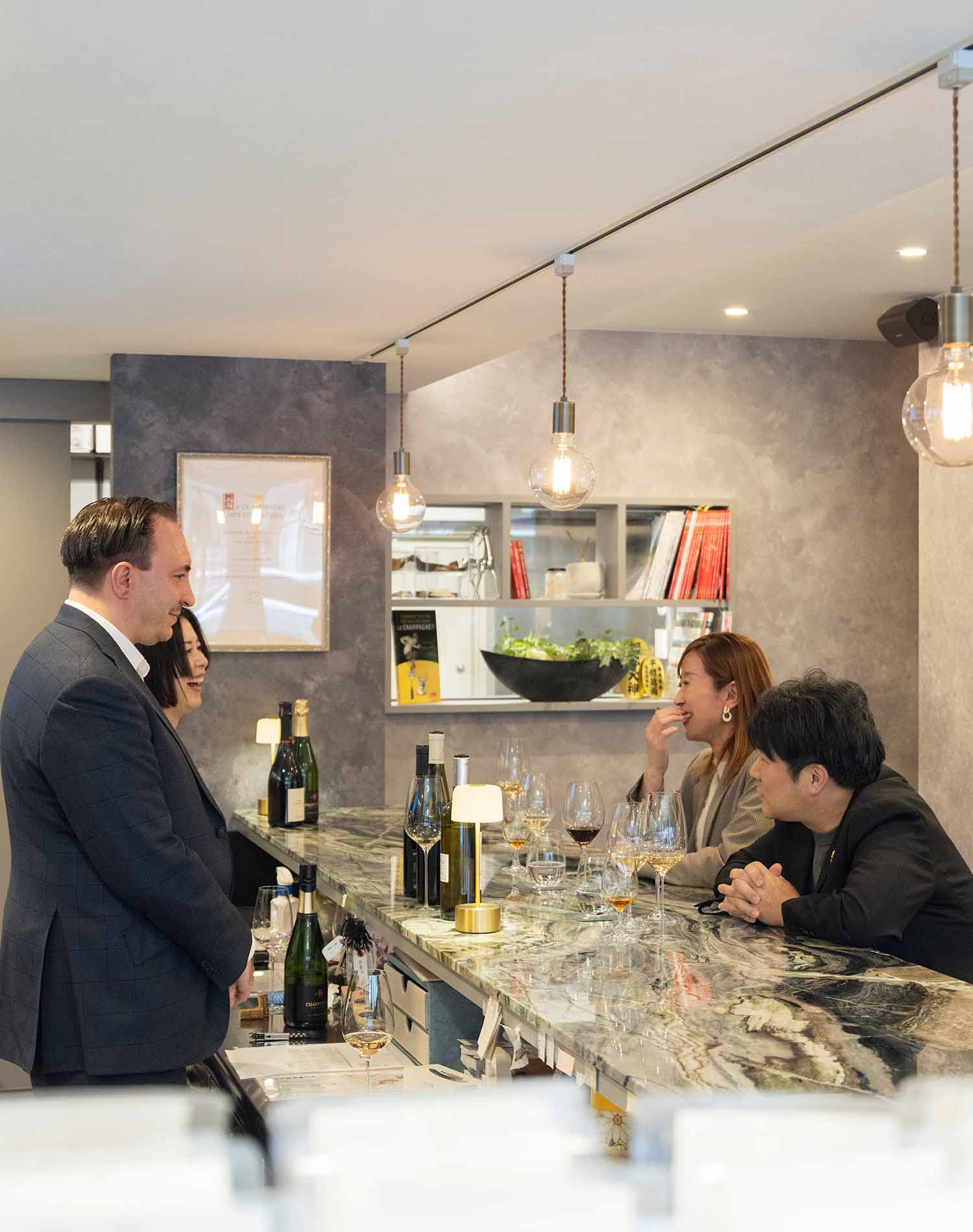 今回テイスティングの会場となったのは、『アオセフランス』が運営するワインショップ&バー『スブリム ワインショップ』。店内に入ると、代表のバロネ・マックシミリアンさんが流暢な日本語と満面の笑みでお出迎え。