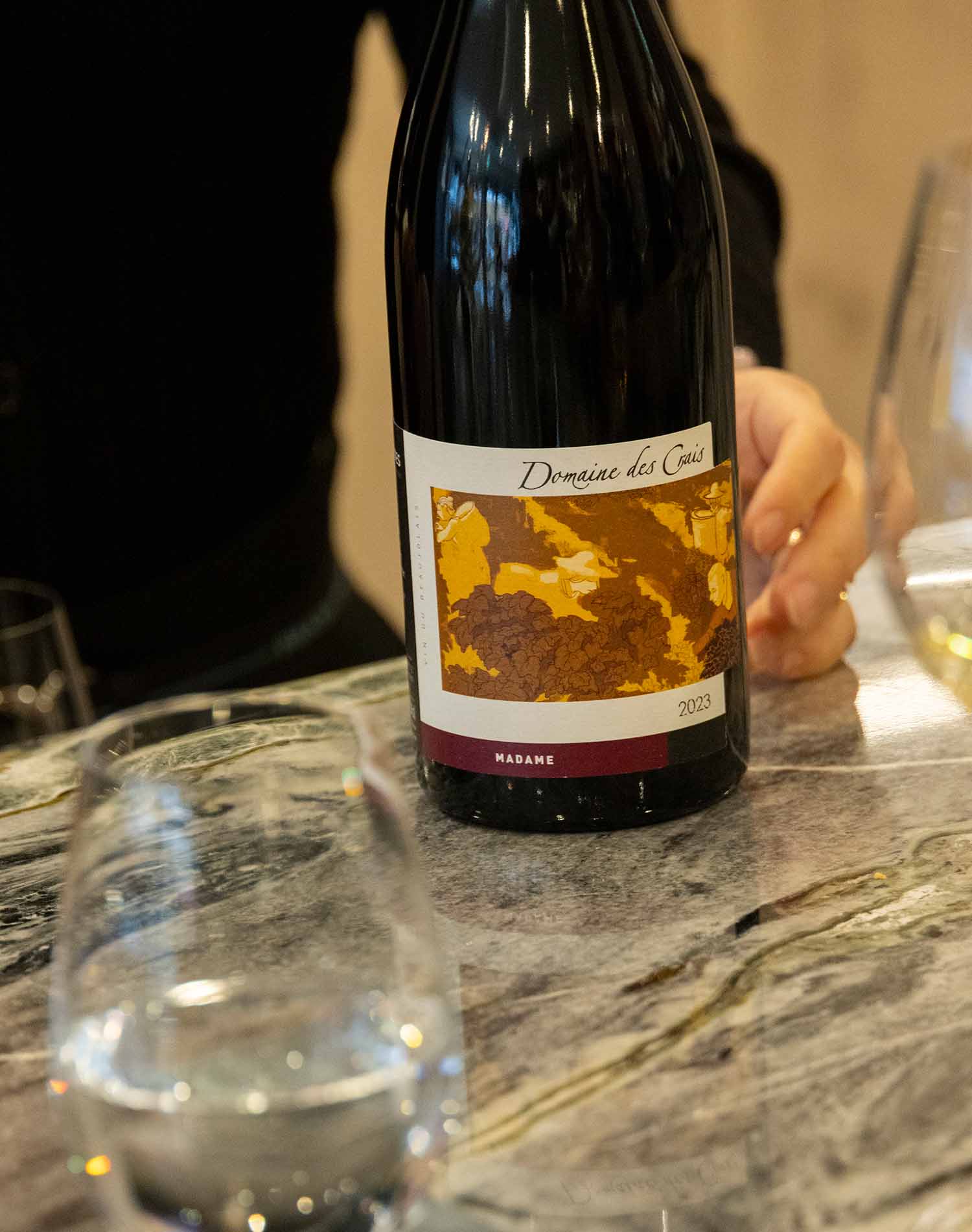 そんなバロネさんの話を聞きながらテイスティングを重ねた結果、紙谷さんが「これ、いいですね」と候補のひとつに挙げたのが、『シャトー ジンコ』の白ワイン。聞けばこちらは、ボルドー初の日本人醸造家・百合草 梨紗さんが手掛けるシャトーのワインで、キュートなラベルは百合草さんの娘さんが描いた絵とのこと。そういったストーリーも含めて、ワインに詳しくない人でも会話が始めやすい1本です。