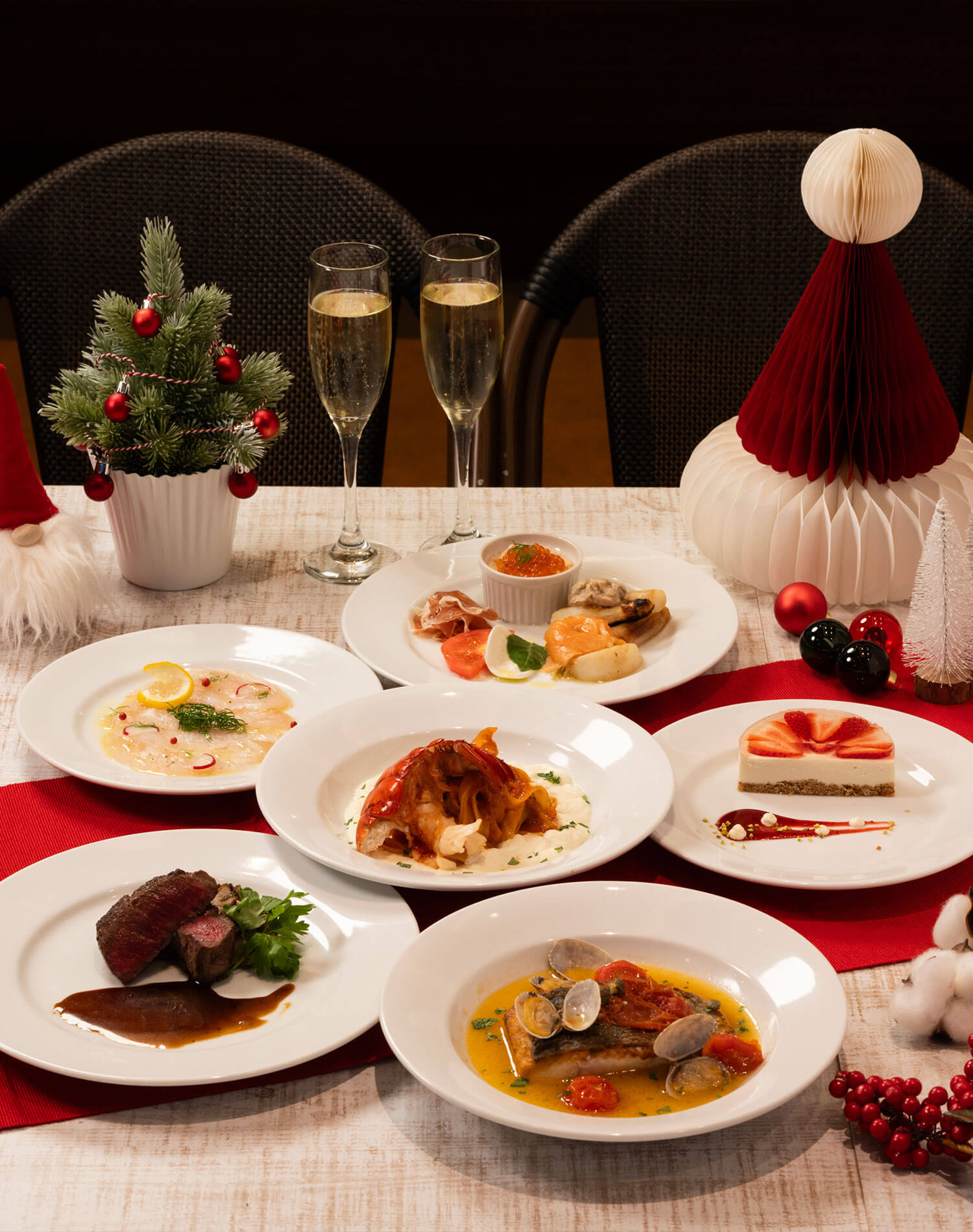 コースは、前菜からパスタ、魚料理、肉料理、ドルチェまで全6皿。冬の食材が持つ旨味とクリスマスらしい彩りを生かしながら、見た目にも気持ちにも、聖夜らしい高揚感を添える構成に。