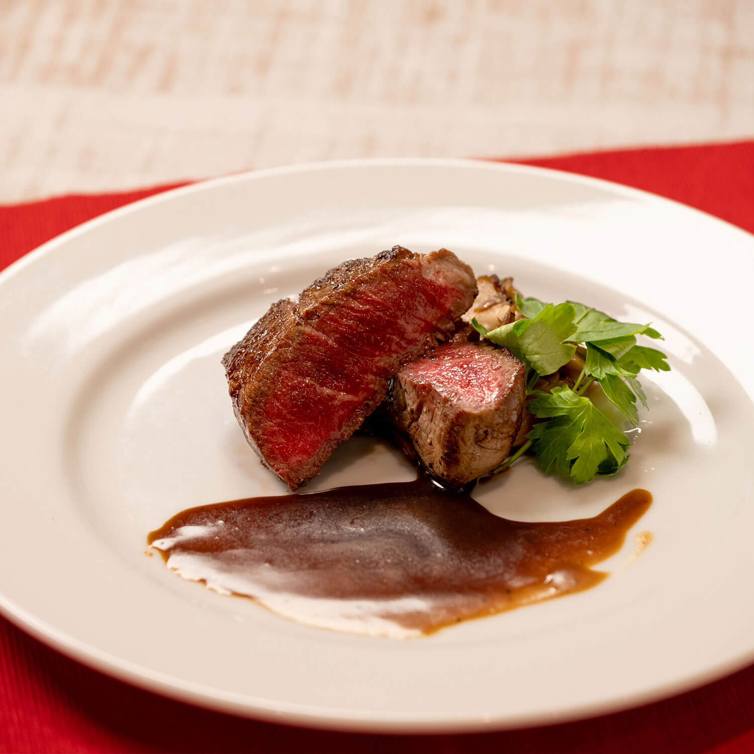 「ハイグレードな国産和牛のフィレステーキ。マデイラワインを煮詰めてフォンドボーと合わせたソースは、少し甘めで奥行きのある味わいです」