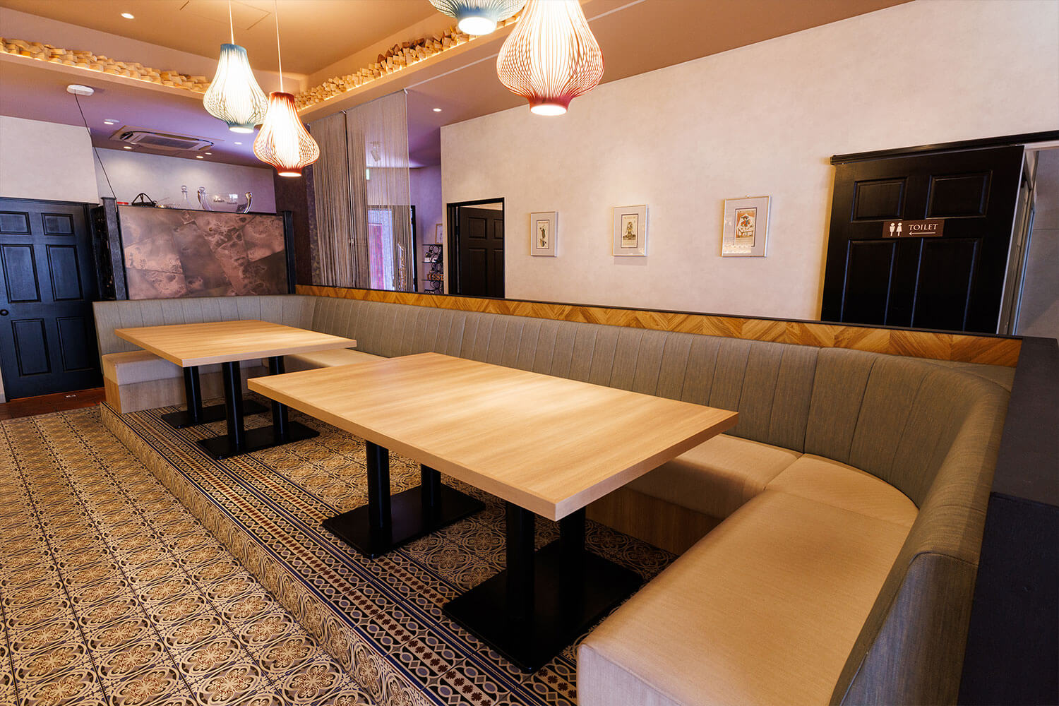 その他店内には、100インチの大型スクリーンを備えたプロジェクター付きの個室や、 暖炉をモチーフにしたサイネージなども設置。随所に最新技術を取り入れながら、人の手の温かさや居心地の良さを大切にした店づくりを実践しています。