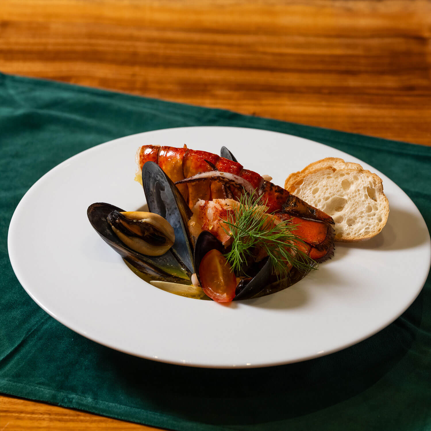 オマール海老を主役に、ムール貝やアサリなどの魚介で旨味を引き出した、フランスの定番魚介料理。オマール海老ならではの濃厚で奥深い風味をお楽しみあれ。