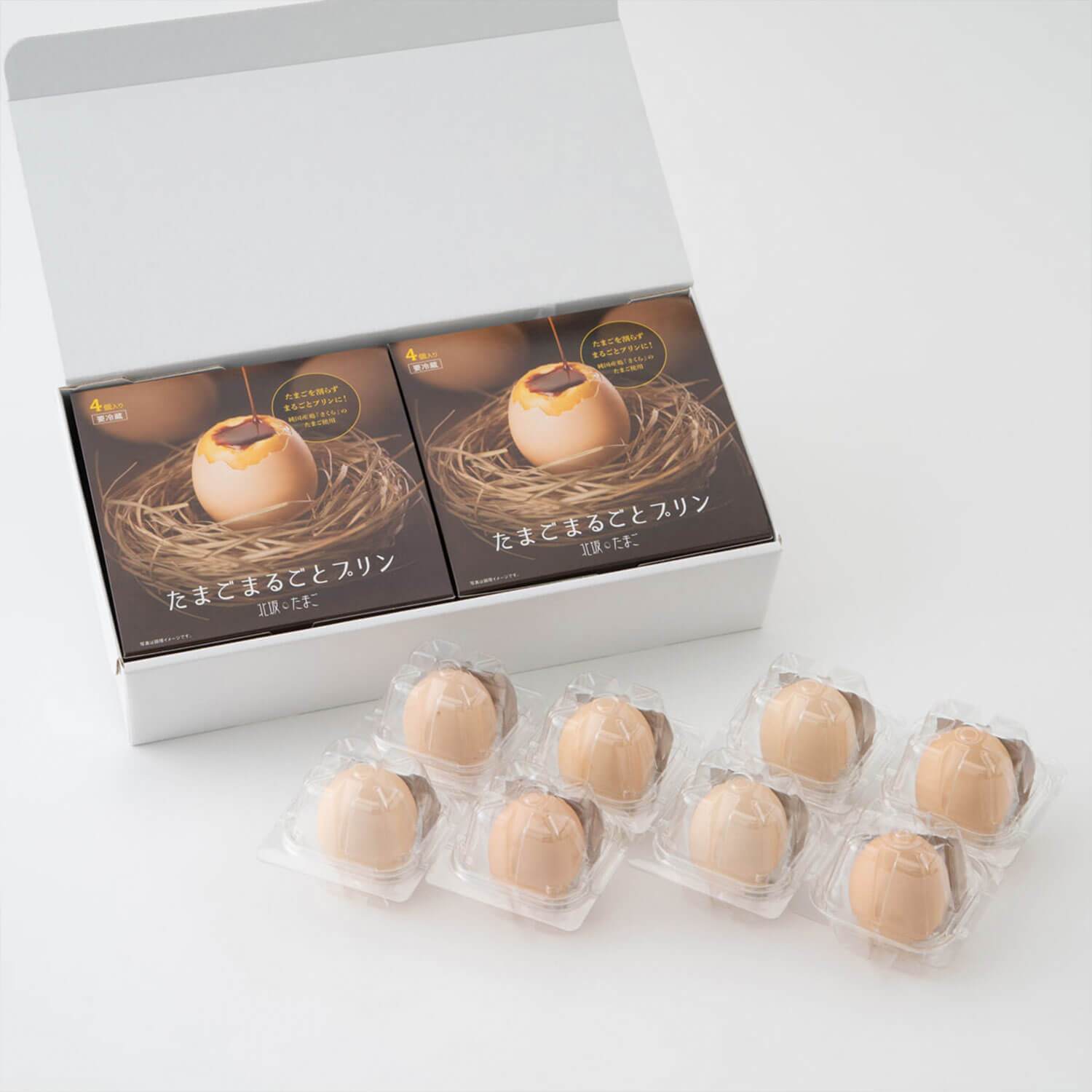見た目は普通のたまご。でも殻を割ってみると、中身がプリンのような食感に仕上がった、『北坂養鶏場』ならではの不思議なスイーツ。原材料は、たまごのみ。付属のカラメルソースと合わせて、たまごの新境地をお試しあれ。