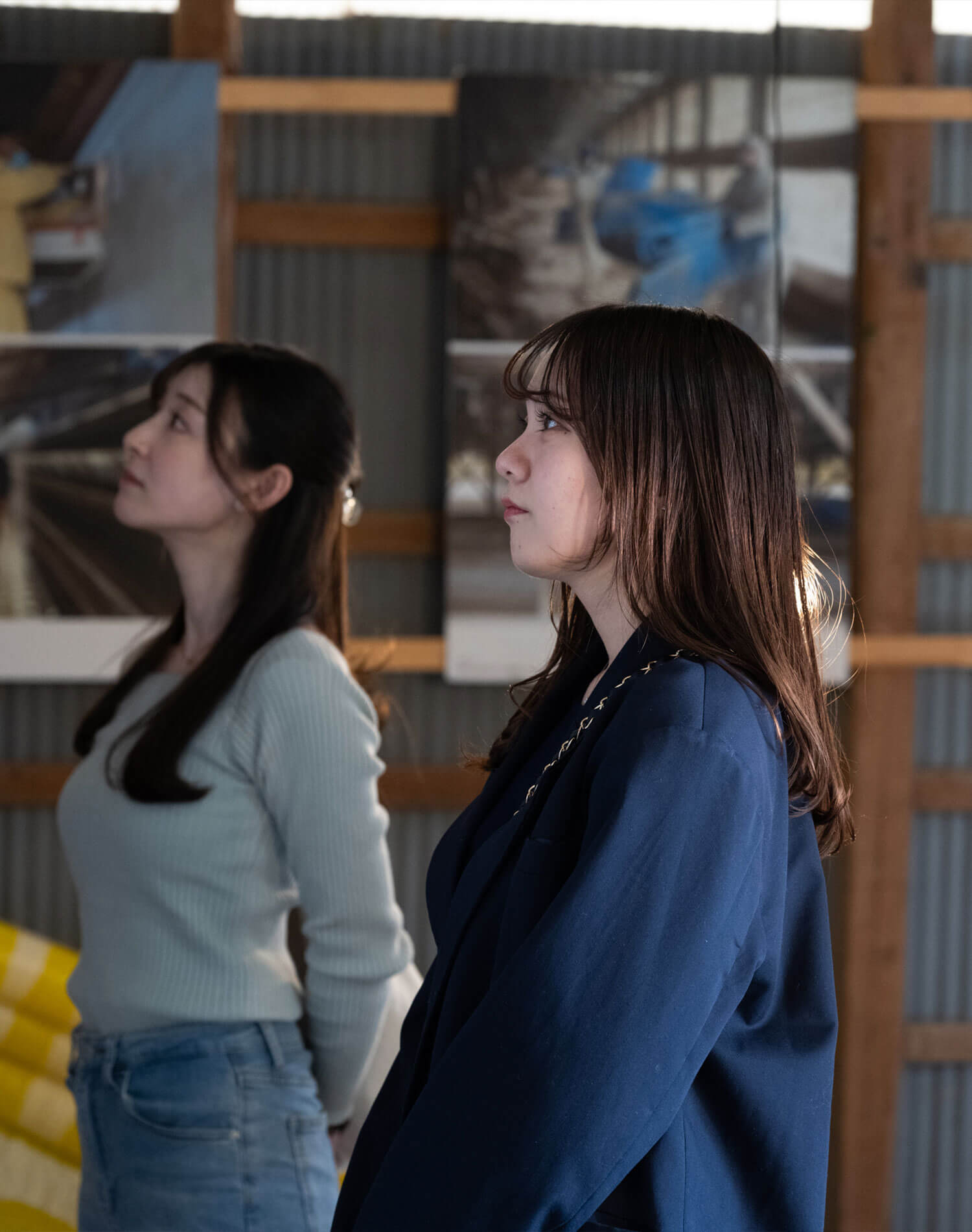 その別棟にて、静かな緊張感を秘める写真展示に見入る2人。ちなみに撮影したのは『北坂養鶏場』の従業員であり、アーティストとして『キトサカプロジェクト』にも参加する写真家の横山 佳奈恵さん。