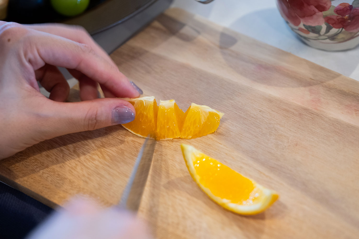 髙野さん「そうなんです。果物は特に皮があるので、普通の包丁だと少し押し込むような力が必要になっちゃうんですけど、この包丁はスッと入りますよね」