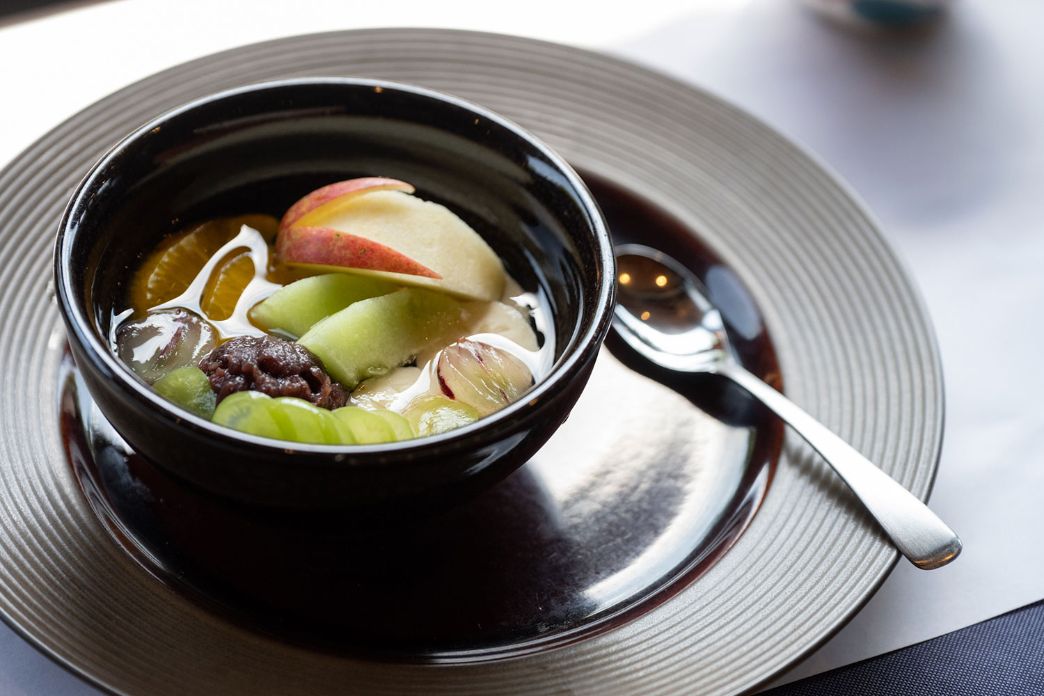 サラダの次は、フルーツぜんざいづくりの準備に。果物の香りが立ちのぼるなか、実際に包丁を手に取ったイワイダの口からは、思わず感嘆の声が。「フルーツって、こんなふうに切れるんですね!」。切れ味と軽さに驚きながらも、楽しい料理の様子が伝わってきました。