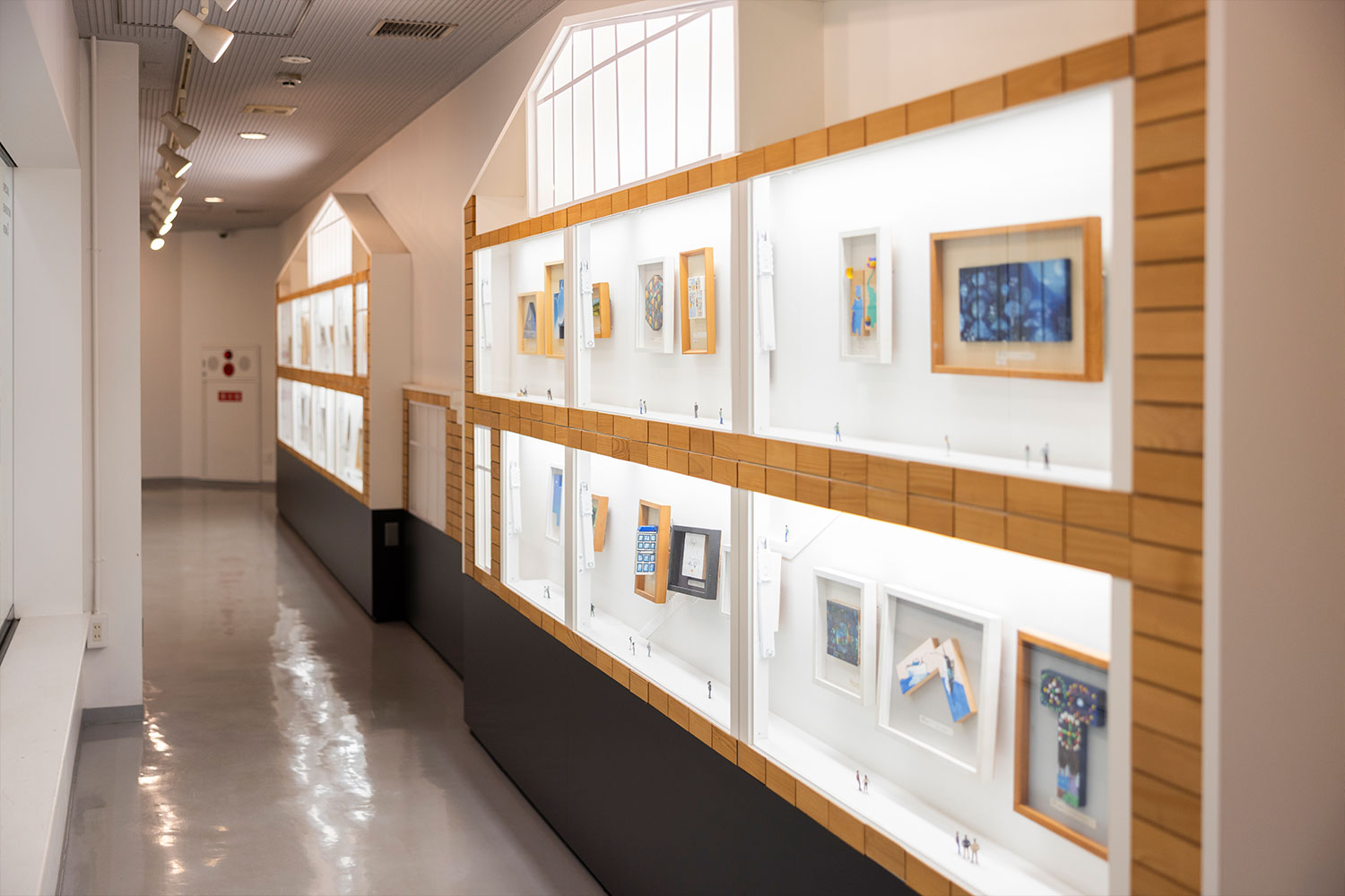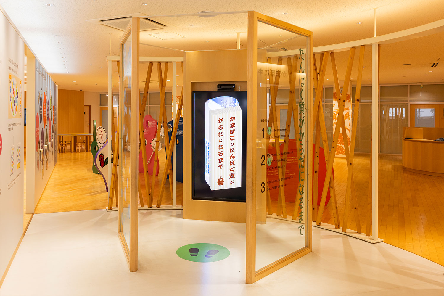 揚げかまぼこ作りのあとも、館内にはまだ見どころが。科学的にかまぼこを分析し たコーナーや、デジタル技術を使った体験型展示、創業160年の歴史資料展示など。 さらに2階には、かまぼこ板をキャンバスにしたアート作品の展示もあり。つまり、 ここだけで半日しっかり楽しめちゃう。
