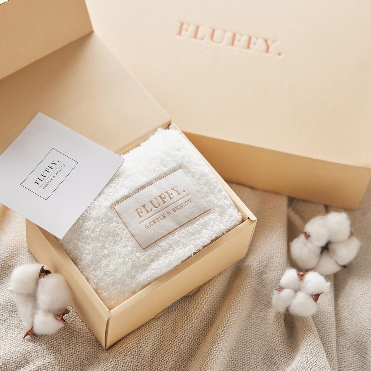 「FLUFFY.」は、吸水力の高さと乾燥の速さ、そして何度洗濯しても持続する柔らかさが特長のタオルです。優しくあてるだけで水分を吸い取るほど吸水性に優れているため毎日のドライヤーの時間を短縮します。また摩擦抵抗が非常に少ないため、髪のキューティクルを傷つけず綺麗に保ちます。お肌への負担も少ないので、敏感なお肌のお悩みにも寄り添う美容道具のようなタオルです。