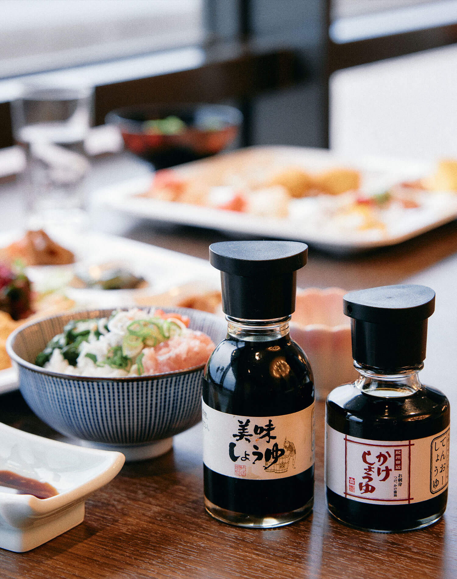地域の食材だけでなく、地域の調味料も用意。ネギトロ丼には〈天王醸造〉の美味しょうゆとかけしょうゆをぜひ。