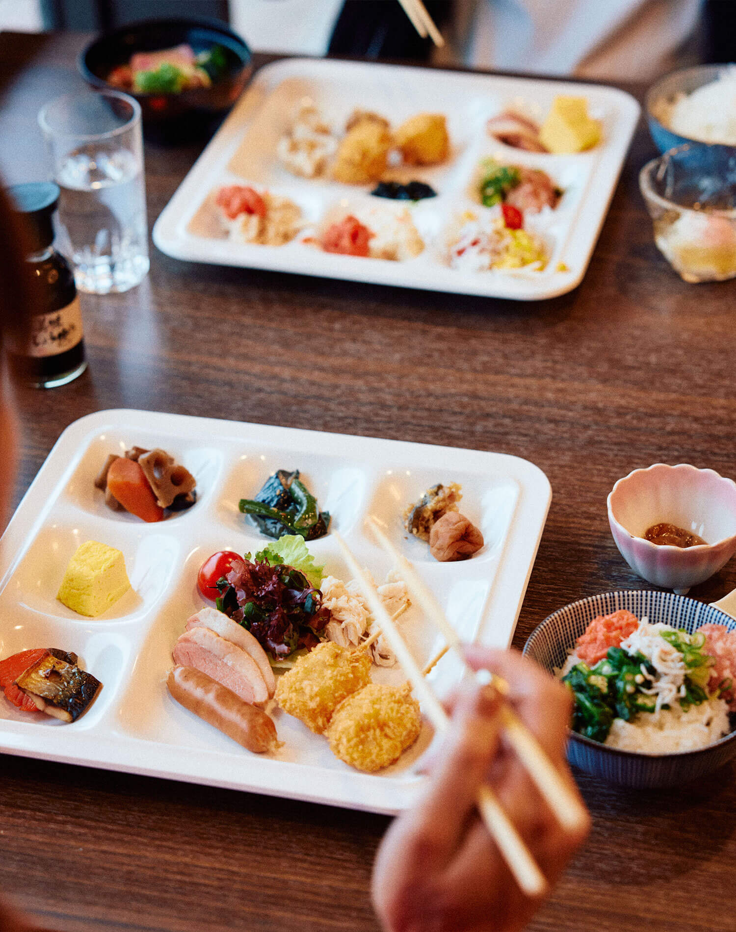 朝食は、地元の新鮮食材を取り入れた和朝食ビュッフェ。季節の野菜や魚介を中心に、焼きたてのパンや和歌山らーめんなど揃い、選択肢は多彩。海を眺めながら、栄養満点の始まりを。